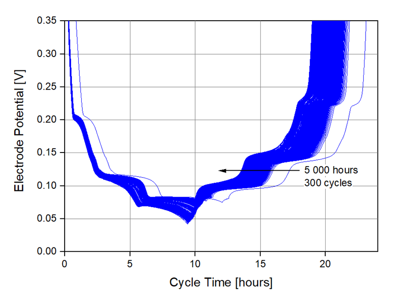 In this new sample test, we have once again cycled a PAT-Cell in a PAT-Tester-i-16 but increased the experiment time to a full 5000 hours. We want to show you the impressive results here.