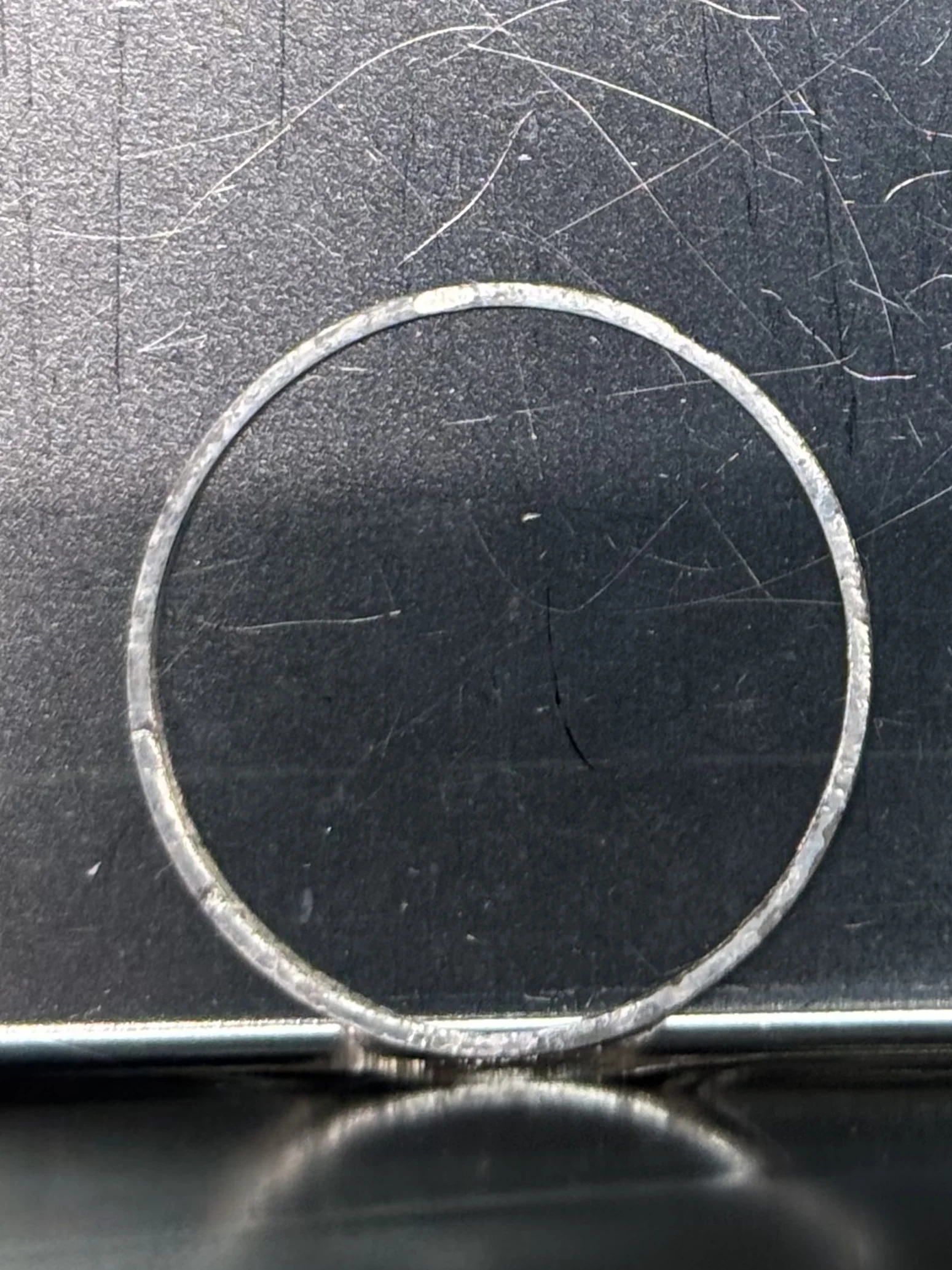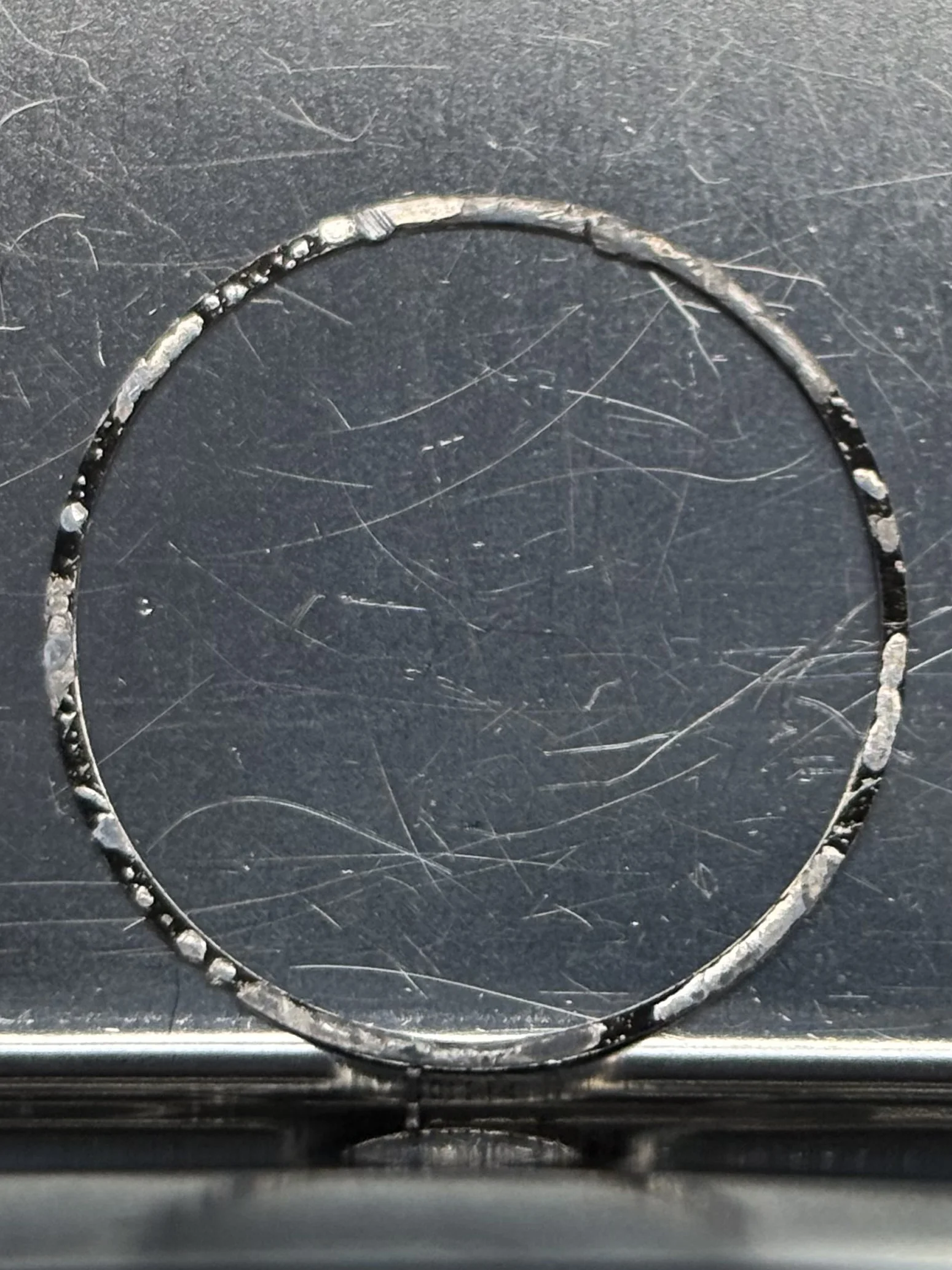 The purple colour is caused by a layer of Lithiumnitride (Li3N) on the ring’s surface. This is a reaction product of the metallic Lithium with atmospheric Nitrogen. Even if you operate in an Argon-filled glovebox, several hundred ppm of N2 in the Glovebox atmosphere is common, unless you operate a Nitrogen scrubber. Thus, a discolouration of the rings is nearly inevitable. The Li3N does not impede the cell chemistry in any way and has no influence on the reference potential. We tested reference rings with varying degrees of discolourations and couldn’t find any derivation from freshly made, silver Li rings (see photos).