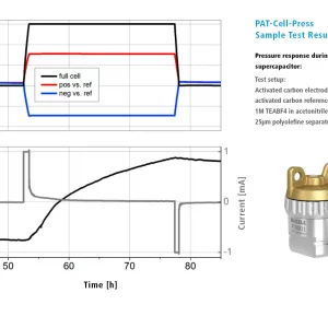 Introducing the PAT-Cell-Press II, an innovative 3-electrode battery test cell designed to measure the expansion of reaction gases during electrochemical cycles!