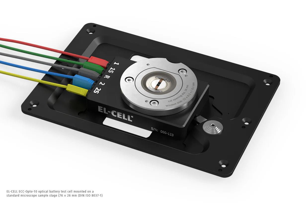 The ECC-Opto-10 test cell is an advanced next generation battery test cell. It is designed for operando characterization of electrodes using light microscopy, Raman spectroscopy or XRD in reflection mode.